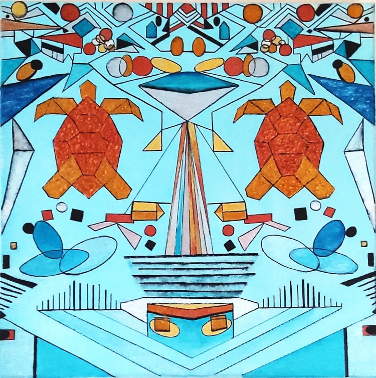 Réf 106 « Originales tortues » châssis lin 30 X 30 120 € Livraison incluse