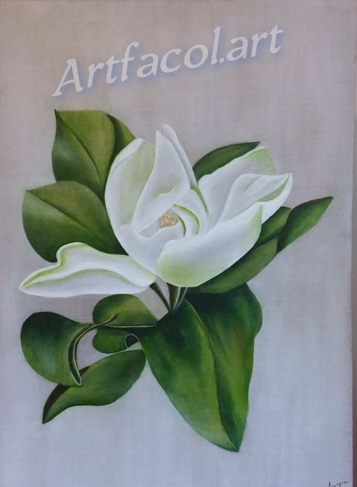 Réf 100 Fleur de Magnolia Châssis lin 70 X 50 300 € Frais d’envoi NI