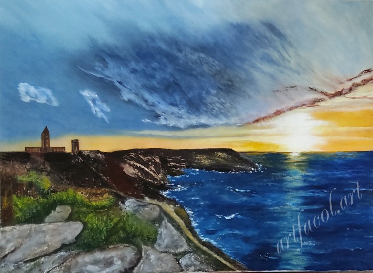 Réf 106 Cap Fréhel avec encadrement châssis lin huile 400 €