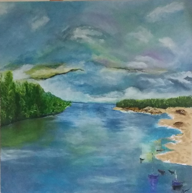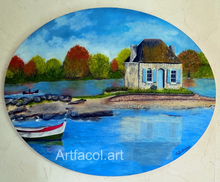 Réf 109 La Ria Châssis 3 D coton 60 X 60 Peinture acrylique 180 € Livraison non incluse