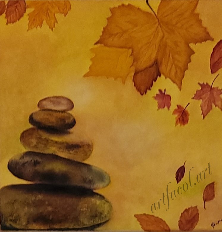 Réf 100 zen automne Châssis coton 30 X 30 120€ (Frais d’envoi inclus)